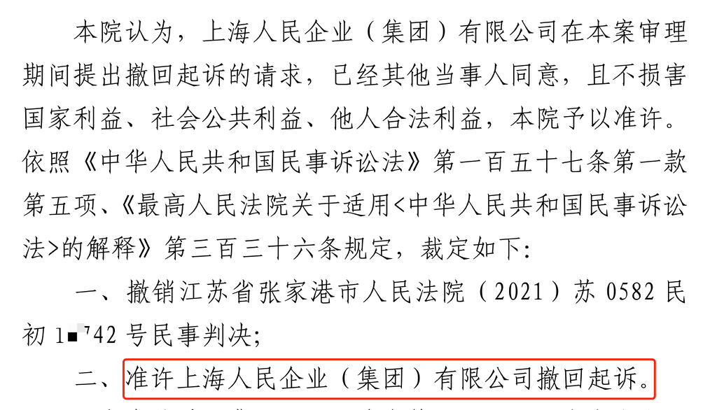 近日,由我所辉知队马律师、姚律师代理的苏州中院人民企业系列维权案迎来终结,上海人民企业(集团)有限公司(以下简称上海人民公司)对六个被告撤诉。这是继山东成武法院上海人民公司撤诉后,其再一次在系列案件中撤诉结案。值得注意的是,本次苏州中院六案审理过程中,上海人民公司态度强硬,在自身权利基础存在瑕疵甚至重大缺陷的情形下,既拒不撤诉,亦拒绝调解。在另案中西安中院、陕西高院陆续驳回原告诉请的背景下,苏州中院高度重视,案件提交了审委会审查。审委会审查后,上海人民公司决定撤诉(撤诉裁定如下)。苏州六案中,上海人民公司态度前后差异甚巨,其撤诉原因相信大家不言自明。